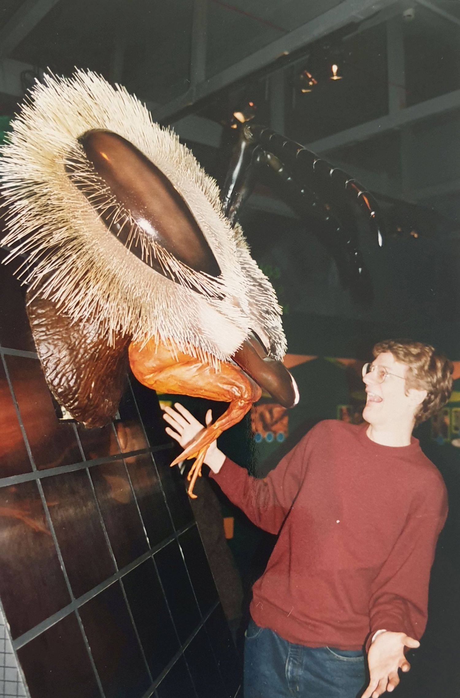 Davin and Matthew Pickering preparing their entry to the bird man contest in Lyttleton harbour. What is even cooler is that the legs of the bird move in time with the wheels of the tricycle.